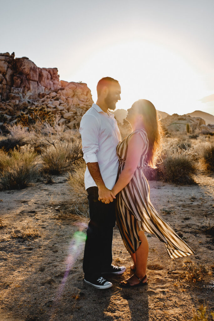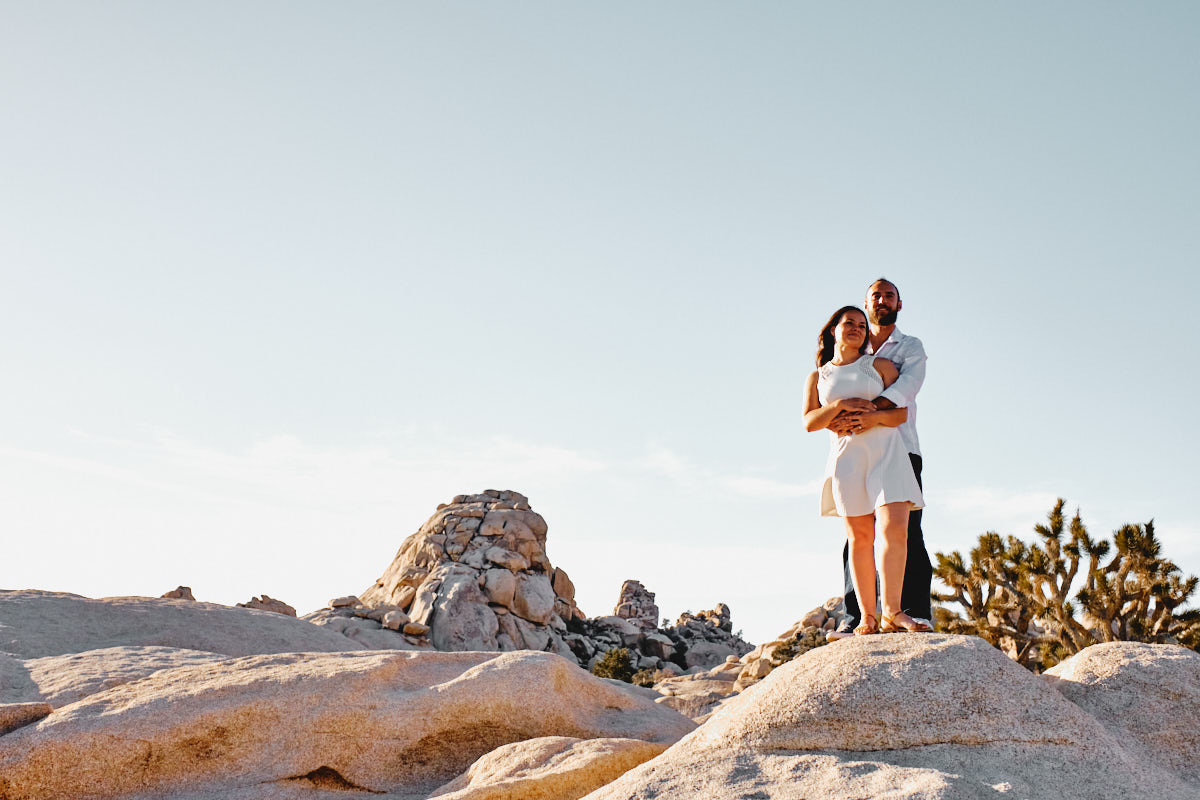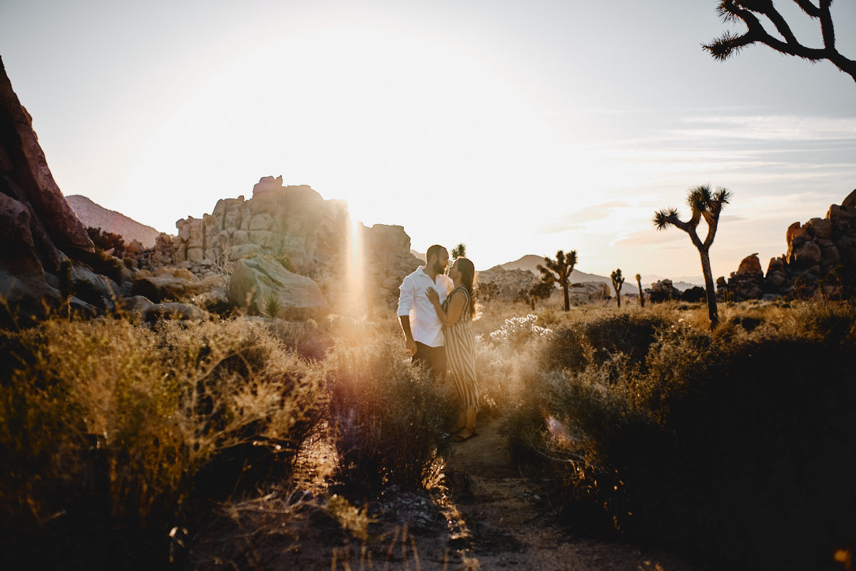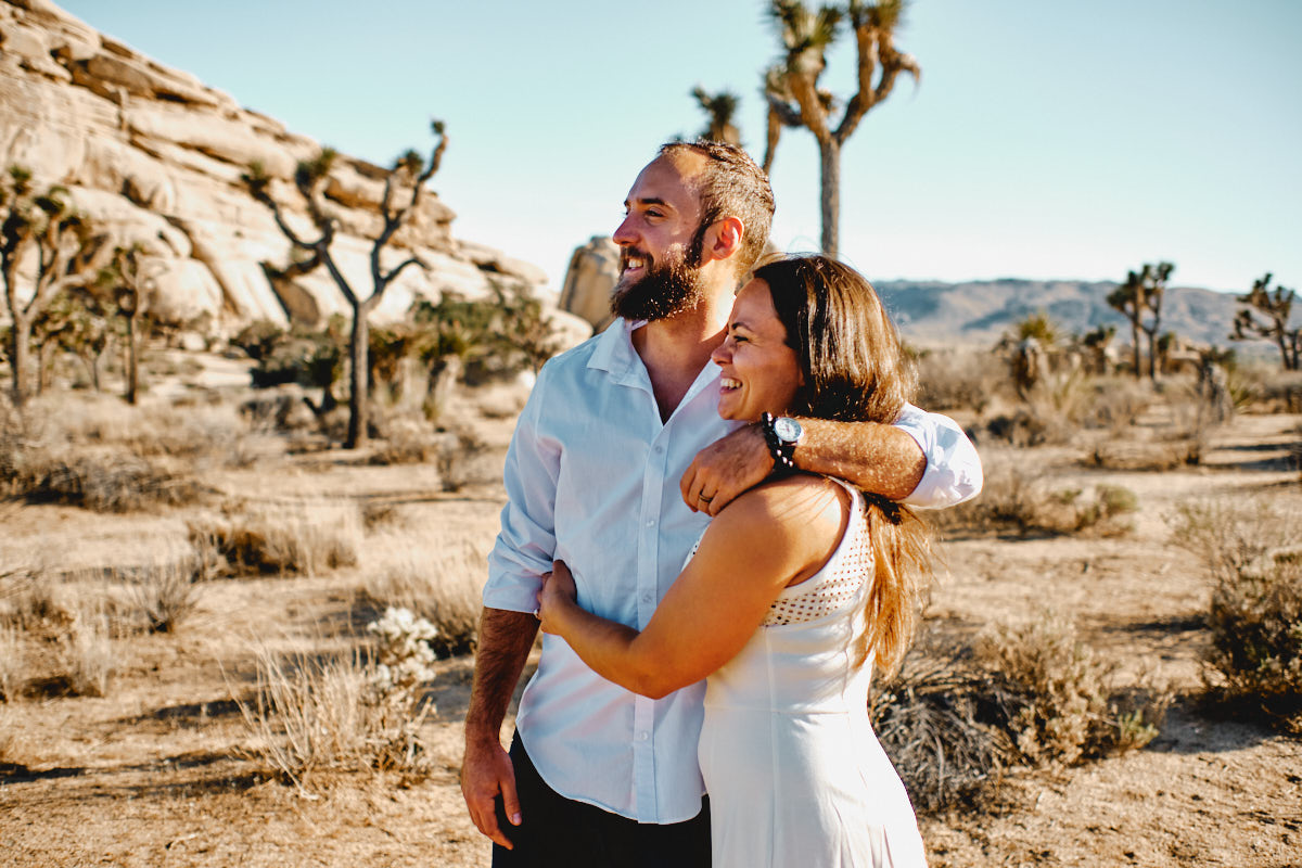 Die goldene Stunde, immer wieder die Beste Zeit des Tages um Fotos zu machen. So auch bei Liz + Ronm, umringt von Kakteen, tollen Felsformationen und warmes Sonnenlicht. Hinzu ein verliebtes Paar und etwas Wind. Perfekt. Das ist die Kurzzusammenfassung des Engagement Shootings im Joshua Tree Nationalpark. Ich freue mich immer, wenn Paare mich anschreiben, für eine Shooting. Die Beiden hatten gesehen, dass wir für eine Hochzeit in Los Angeles sind und so durfte ich ein Paarshooting der Beiden machen. An einem meiner Lieblingsorten, dem Joshua Tree Nationalpark.