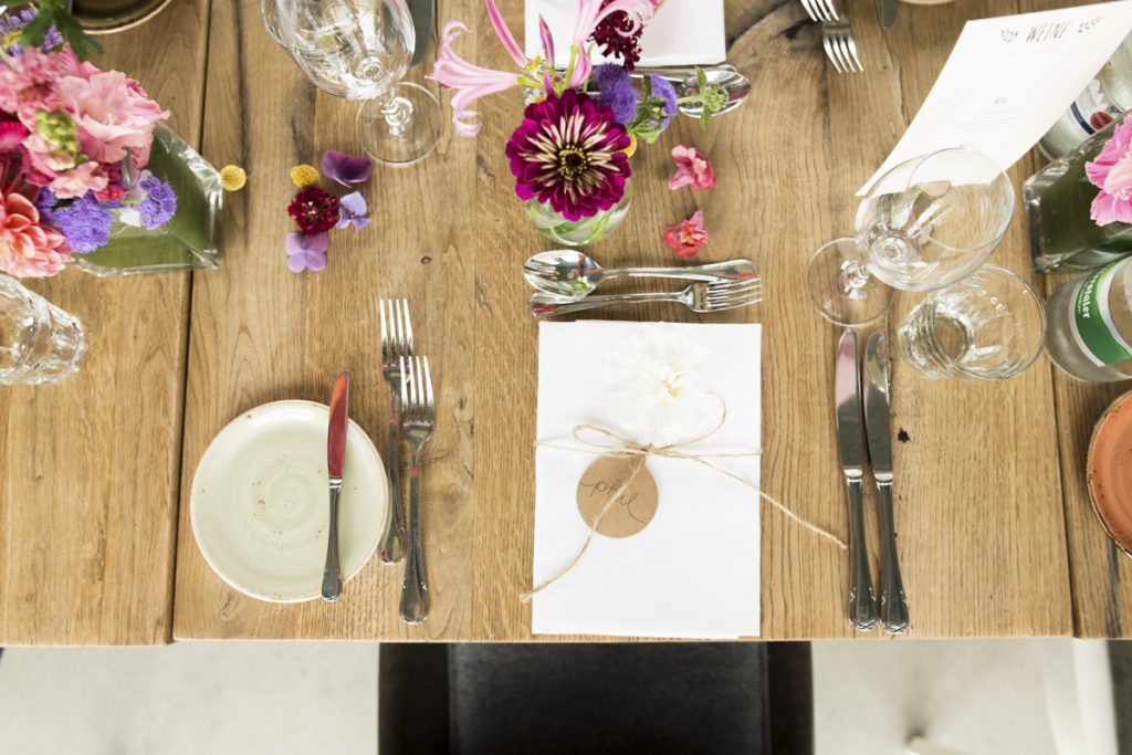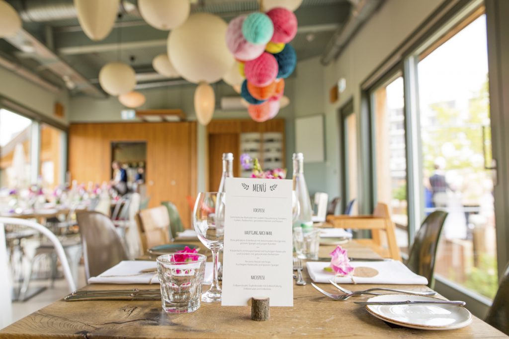 Zur Feier ging es zur LAUBE LIEBE HOFFNUNG in Frankfurt. Ein tolle Restaurant mitten in einer grünen Insel welche durch Sein modernes Ambiente und Architektur besticht. Designermöbel runden das ganz ab. Gepaart mit der bunten Hochzeitsdeko der Beiden, ein Traum.
